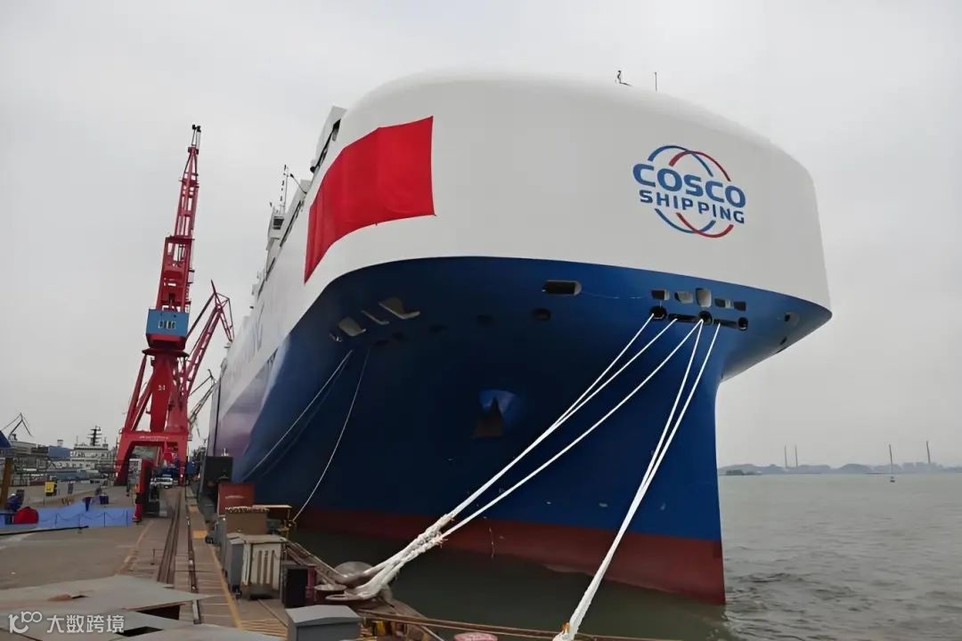 △中远海运特种运输股份有限公司负责运营的7000车位LNG双燃料动力汽车运输船“湘江口”轮