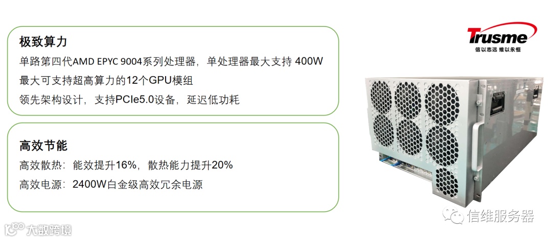 国内某知名算力租赁企业,基于其在云计算网络资源及技术方面优势,可根据业务需求灵活调度算力资源,提供CPU、GPU等多种算力服务,向人工智能、云游戏、工业互联网等行业提供实时算力的需求。然而要实现提供多种算力服务,强大的算力必不可少。算力是人工智能产业创新的基础,大模型更是需要处理海量的计算任务,这就要求更高计算性能。在了解客户需求后,信维量身定制拥超强性能的AI服务器H5800G5。它是一款支持单路AMD EPYC 9004最大支持TDP400W处理器,双12通道内存,支持12片双宽GPU卡,助力于AI深度学习、机器学习领域。