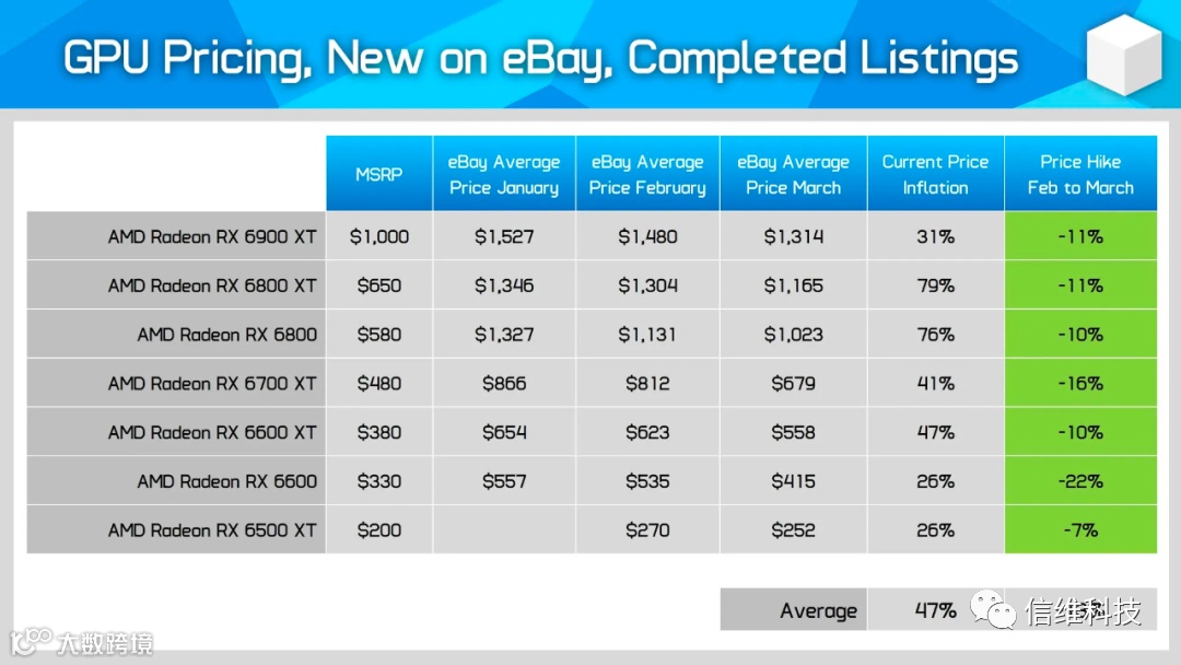Hardware Unboxed 还指出,转售 GPU 的 eBay 价格有所下降,3 月份新英伟达显卡的平均价格与上个月相比下降了 10%。对于 AMD 来说,下降了 13%,这个迹象表明,总体而言,事情正在朝着正确的方向发展。