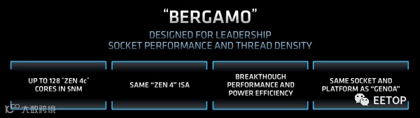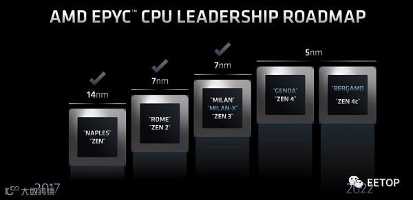 AMD预定采用台积电5纳米制程打造Zen4并不是新闻,但同时冒出「两种核心」就让人极度震撼了,除了最多96核心的Zen 4 EPYC「Geona」,还有128个「云端运算最佳化」Zen 4c(cloud optimized)核心的Bergamo,说这背后没有「保证有大客户下单」绝对是骗人的, 也充分印证笔者多年前观点:AMD摆明全力锁定数据中心业务,不再追求面面俱到。