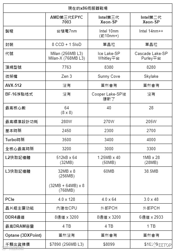 基本上英特尔第三世代Xeon SP「Ice Lake-SP」就注定被AMD第三代EPYC核心数量和缓存容量整个碾压过去,据已知信息,这状况几乎确定会延续到下世代竞争(SapphireRapids对决Zen 4,后面会提到),也许英特尔数据中心事业群的利润率,还要好一阵时间才能回到超过个人电脑水准,甚至有可能像变心的爱人,永远不会回来。