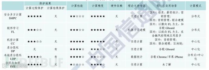 图2 各类隐私保护计算对比图(来源:信通院)