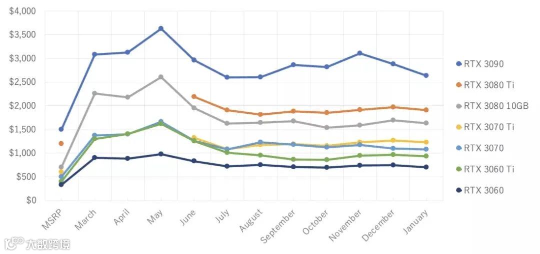 以Nvidia 的 RTX 2060 12GB 和 RTX 3080 12GB为例。这两款 GPU 在市场上推出时都大张旗鼓地进行了造势,也没有固定的厂商建议零售价。因此造就了目前的局面,即通过市场的炒作,原厂可以从承销商,比如 AIB 合作伙伴处获得最大的收益。同时,这反过来又导致普通消费者不得不用很高的市场价格才能买到这些GPU。