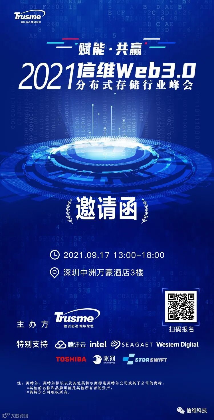 导读:赋能 共赢--2021信维Web3.0分布式存储行业峰会中国深圳 9月17日
