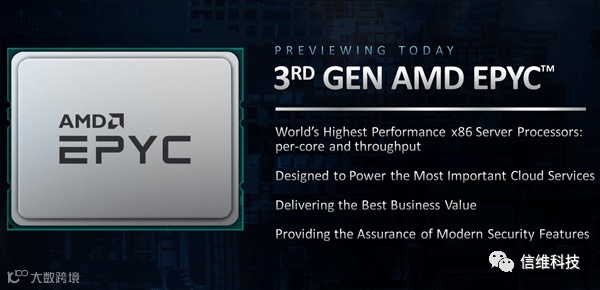 此外,三代EPYC还针对重要的云服务作了强化,可为客户带来最佳的商业价值(AMD似乎不用强调性价比了),同时还有更好的安全性。
