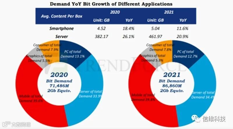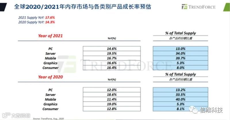 郭祚荣指出:不管是2020年还是2021年,行动式内存和服务器内存的需求加起来都超过70%,因此三星、SK海力士、美光的内存产品均以行动式内存和服务器内存为主。