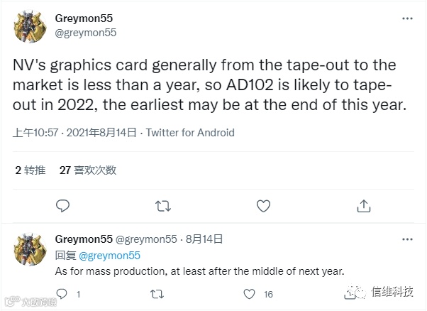 此外与早前的传闻一样,Greymon55 也披露 Ada Lovelace GPU 将于 2022 年 2 季度进入 QS 阶段。