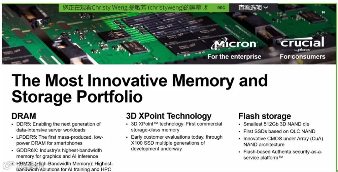 从DRAM到NAND,从NAND到3D XPoint,美光的技术路线代表科技最新的发展水平。对于用户来说,跟上技术发展的步伐,就把握住市场先机。