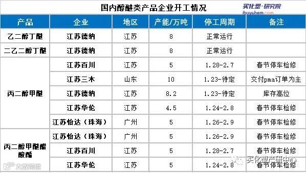 从工厂开工情况来看,丁醚节后利好情绪较深,库存低位,工厂稳定开工;丙二醇醚类需求平淡,供应面充足,出口订单稳定,初步预计春节后醇醚整体开工率将回升至八成附近。