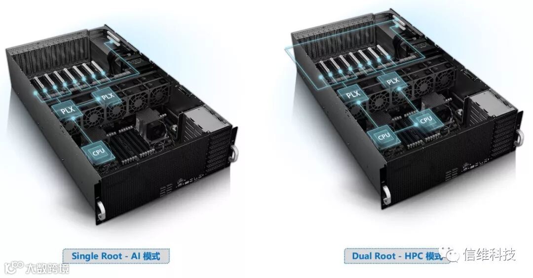 信维SWG320-P08A具备强大的GPU架构,可在4U机箱中可支持八个高效能NVIDIA® Quadro®或Tesla® GPU卡,提供高达100Gb/s的InfiniBand解决方案,藉由如此强大的图形能力,SWG320-P08A以更快的速度和更高的效率完成高强度运算工作。优化内部配置使得SW G320-P08A可容纳各式各样的显卡,包含双槽 GPU,并搭载主动或被动散热模块。
