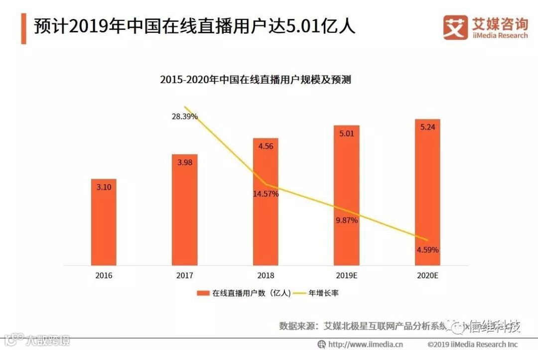随着自制综艺、5G技术、虚拟直播等在线直播新浪潮的出现,直播平台用户规模持续上涨,4K、8K、AR/VR、全息等视频新技术不断涌现,以及通信网络、互联网络的逐步整合,据iiMedia Research数据显示,2019年中国在线直播用户规模预计将超5亿人,随着5G时代的到来,中国在线直播行业仍将保持稳定增长态势。