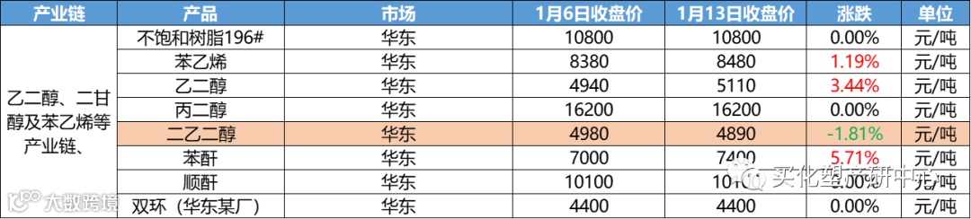 乙二醇、二甘醇及苯乙烯等产业链