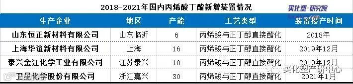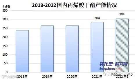 截止至2021年12月,国内丙烯酸丁酯年产能284万吨,较2020年同比增长7.16%。2021年新增产能1家,卫星化学股份有限公司30万吨装置,但由于吉林石化以及万州石化丙烯酸丁酯装置长期停工或注销而剔除,分别是3万吨/年、8万吨/年,剔除11万吨/年后合计年新增产能19万吨/年。