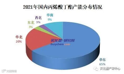 产能分布来看,国内华东地区是产能集中区域,也是新增产能比较集中的区域。截至2021年,华东丙烯酸丁酯产能占比高达64.8%,华北、华南占比分别在20.4%和9.2%。华东、华北地区也是丙烯酸丁酯的主要输出区域。
