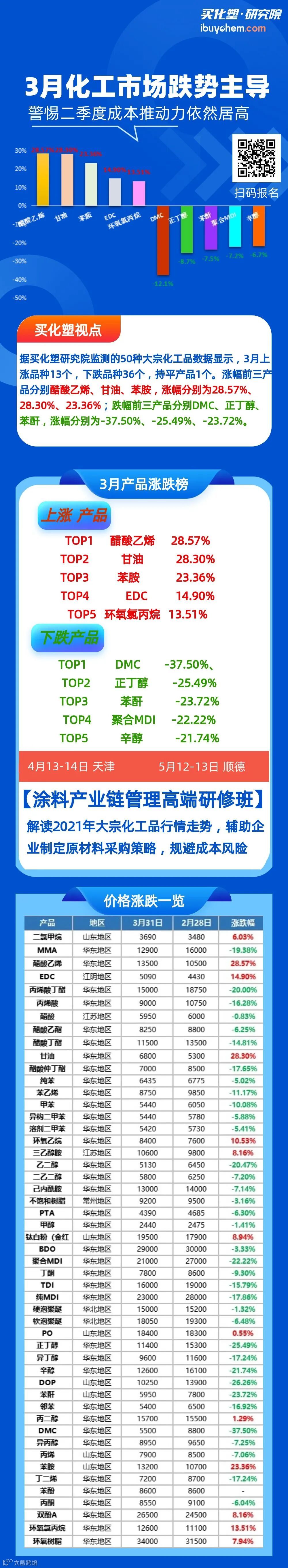 3月化工市场跌势主导 二季度成本推动力依然居高
