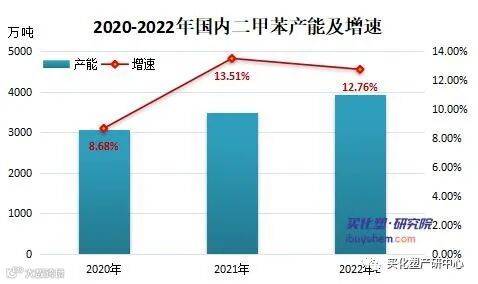 截止至目前,国内二甲苯产能达3487万吨,年增速13.51%。