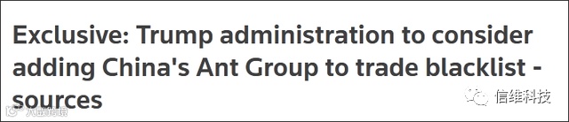 “特朗普政府考虑将蚂蚁集团列入贸易黑名单” 截图