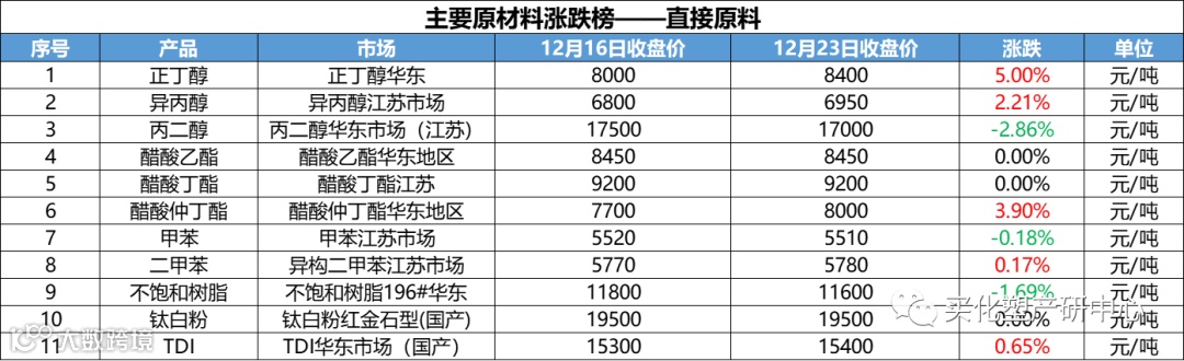 买化塑研究院特设栏目“中国涂料原材料行业趋势分析周报”汇集了国内外涂料化工市场的近期要闻,监控涂料行业主要原材料产业链(直接原料和间接原料)的每周价格涨跌,深度解析涂料原材料市场每周市场行情、后市预测。关注买化塑研究院,获取中国涂料行业最有价值的行情资讯分析。