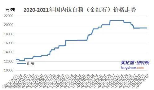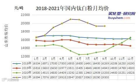 截止至目前,国内钛白粉金红石型价格18000-21100元/吨,锐钛型价格在16000-19000元/吨,氯化法价格在21000-23200元/吨。今年钛白粉累计涨幅超过50%,价格创4年新高。