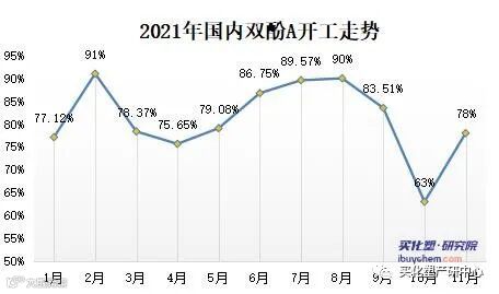 随着南通星辰、长春化工(江苏)、南亚塑胶(宁波)装置停车检修结束,双酚A开工率逐步提升,截至至目前双酚A开工负荷逐步提升至78%左右,较10月初出现明显回升。但伴随着双酚A开工率提升的同时,下游PC行业产能进一步扩张,行业竞争加剧在很大程度上抑制企业开工负荷,前三季度我国PC行业平均开工率甚至不足五成,据悉目前行业PC行业平均开工率仅在46%左右。