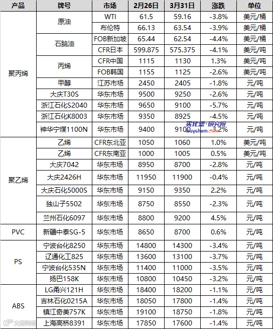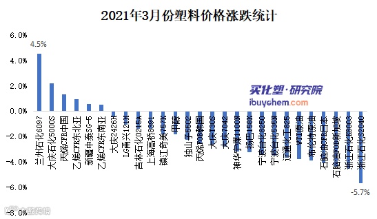 导读:3月份塑料品种中仅有HDPE膜料、HDPE拉丝和PVC价格上涨。