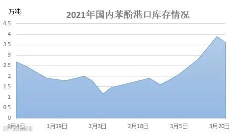 库逐渐增多,截止3月22日华东江阴苯酚港口库3.6万吨,虽港口库存略有减量,但整体库存较前2个月有多增多,但较去年同期还是略有下滑的,后期随着船货陆续到港补充,库存量存增加预期,国内市场依然面临供应增多趋势,价格上也较难有上行动力。