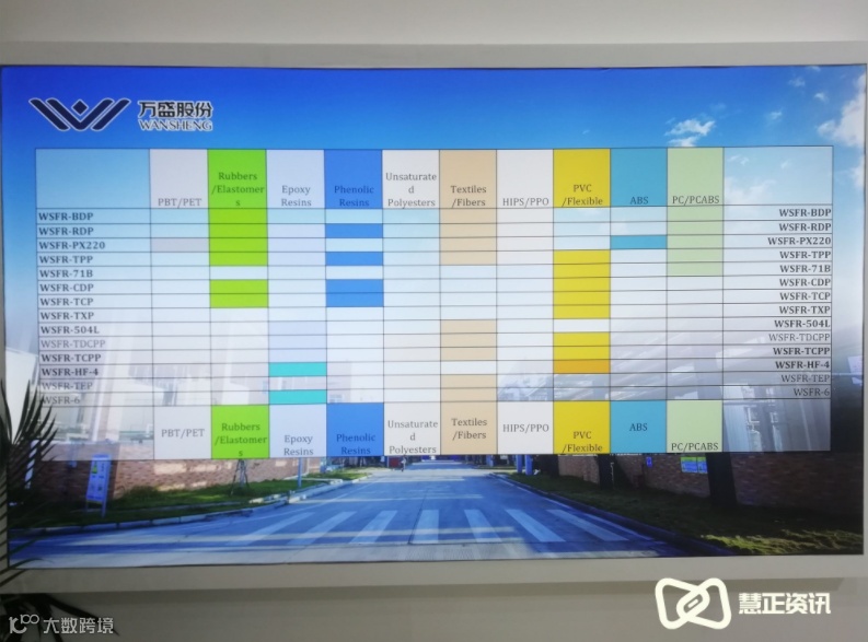 全球最主要的磷系阻燃剂生产、供应商。经过20多年的发展,公司不断拓展业务板块,已经形成多业务板块齐头并进的良好发展态势,目前拥有3个研发中心,2大生产基地,全球化的销售网络。公司在中国的上海、江苏、浙江、广州4个区域销售中心,设有欧洲万盛、英国万盛、美国万盛、香港万盛销售子公司,服务欧洲、美国当地客户。