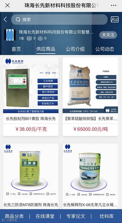 珠海长先新材料科技股份有限公司成立于2005年5月18日,是一家集研发、生产、销售新材料聚苯硫醚(PPS)、环保树脂、绝缘油、三防漆、助焊剂、清洗剂、特种胶、金属表面处理剂为主的国家高新技术企业。在珠海高栏港经济区拥有占地40000平方米工业园。经过数年的发展,公司已经发展成为具有较大规模及影响力的聚苯硫醚(PPS)和电子化学品辅料一站式供应商。