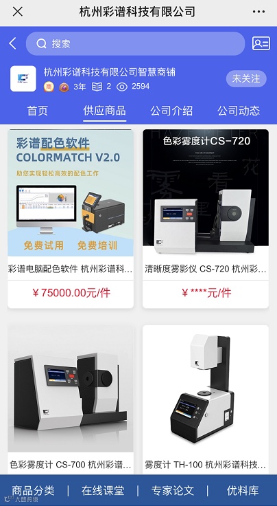 杭州彩谱是颜色检测领域的国内领军企业,主要从事颜色检测设备的研发、生产和销售,产品包括精密色差仪、分光测色仪、光泽度仪、雾度计、油漆油墨配色软件。在国内外印刷、涂料、汽配、金属、家电等行业和科研机构得到广泛应用。