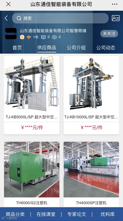 山东通佳智能装备有限公司,创始于1953年,是一家专业设计、制造、销售高精密绿色节能智能中空吹塑机的高新技术企业。公司地处山东省济宁市国家高新技术产业开发区黄金大道16号,占地面积180000平方米。山东通佳公司是中国塑料机械工业协会副会长单位,中国塑料加工工业协会副理事长单位,国家级重点高新技术企业,中国专利山东明星企业,并通过了ISO9001:2000质量管理体系认证和CE认证,通佳产品分别被列为“国家重点新产品”“国家火炬计划重大项目”“山东名牌产品”“山东省著名商标”。通佳公司在全球51个国家和地区注册了 TONGJIA国际商标。通佳公司刚刚承办了“2018中国中空制品行业年会”;吹塑机装备遍及全国各地及世界80多个国家和地区,通佳VBD系列机型是通佳公司推出的专业生产高端液体包装瓶的设备,该设备采用了国际最先进的技术和加工工艺。