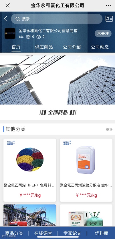 金华永和氟化工有限公司,创立于2004年,注册资金为1236万美元,员工约为440人,隶属于永和股份,是一家专业的含氟制冷剂和氟聚合物产品的制造企业。冰龙(Iceloong)牌制冷剂类产品包括:二氟一氯甲烷(HCFC-22)、五氟乙烷(HFC-125)、混配制冷剂等。耐氟隆(Niflon)牌氟聚合物产品包括聚全氟乙丙烯(FEP)树脂、聚全氟乙丙烯(FEP)浓缩分散液、聚四氟乙烯(PTFE)浓缩分散液等。