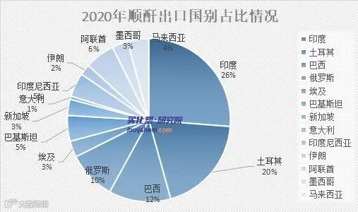 虽然印度仍为顺酐主要出口国,但2020年出口至印度量明显缩减,减量近1万吨,相比之下出口至中东地区的量明显增加。而整体来看,中国顺酐出口格局并未有较大变化,中国内贸市场供需差距有缩窄,但是作为顺酐生产大国,出口依然是顺酐下游领域的重要组成部分。