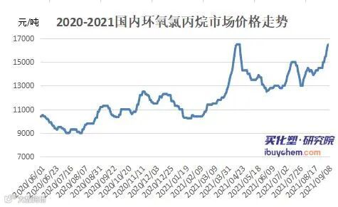 国内环氧氯丙烷市场价格宽幅推涨。截止至9月9日收市,江苏地区现货主流市场价在16400-16500元/吨,较上周涨1500元/吨,山东市场现货主流价格在16100-16300元/吨,涨幅1200元/吨。
