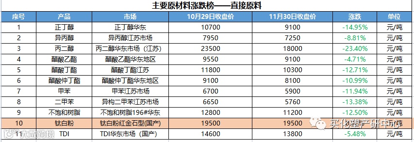 本月涂料主要原料市场监控: