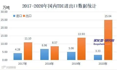 据悉韩国OCI年产5万吨/年TDI装置计划于2月中旬停车检修,计划检修期20天。自万华、新疆巨力顺利投产运行后,韩国对中国调整销售战略政策,对中国出口量逐年递减。自2018年开始,TDI出口量大幅增加,同时进口量明显下降,2020年,TDI进口量仅有3.33万吨,不足出口总量的15%。