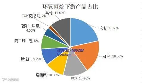环氧丙烷的下游相对分散,占比最大的为软泡聚醚和硬泡聚醚,主要用于聚氨酯泡沫塑料、洗涤剂和消泡剂等,分别占比 21.6%和 18.5%,需求占比超过 5%的下游还有POP、高回弹、弹性体和丙二醇甲醚,占比分别为 13.8%,10.8%,9.2 和 8.0%。