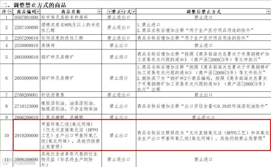 商务部调整加工贸易禁止类商品 环氧丙烷赫然在列