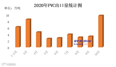 据买化塑研究院【化塑产业链决策系统】跟踪的数据显示,2020年10月PVC出口量为9.64万吨,创年内出口量新高,较去年同期增长135%。