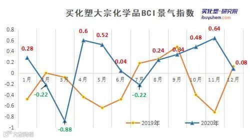 本月BCI大宗化工品景气指数为0.08,指数环比及同比均出现下行。由于基本面动能不足,给化工市场带来一定利空,市场追高情绪减弱,年底之际部分化工行情有一定下行调整。