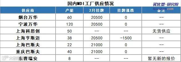 导读:美科思创发函将延长所有MDI等级交货期至3月末,国内聚合MDI涨至27200-27500元/吨
