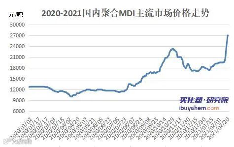 国内聚合MDI市场价格暴涨,美国市场货源缺乏带动国内MDI出口量激增,国内厂家当前大力出口供应,国内市场聚合MDI严重缺货,国内企业基本暂停MDI的对外报价,国内现货供应面紧张,继续发酵。经销商封盘不报,美国受限产能短期内难以恢复生产,国内主流大厂3月份挂牌价极有可能出现上涨。截止至2月24日收市,国内聚合MDI国内市场价已涨至27200-27500元/吨。