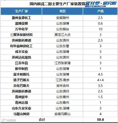 截止至目前国内新戊二醇主要生产厂家共有18家,2020年合计产能预计将达到59.6万吨,其中下半年我国新戊二醇预计新增2套装置,分别为马鞍山神剑4万吨与巴斯夫三期4万吨。据神剑股份表示,公司预计马鞍山NPG项目9月底前投产,目前投产准备工作基本完成。