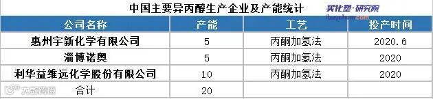 自2010年以来,我国异丙醇产能不断提升,但需求跟进有限,产能过剩局面快速出现。数据显示,2019年国内异丙醇总产能约100万吨/年,以丙酮加氢法生产工艺为主。2020年国内异丙醇行业仍然有新装置投产,合计新增产能20万吨,总产能将达到120万吨左右,同比增幅约20%,国内异丙醇供应再登新台阶。