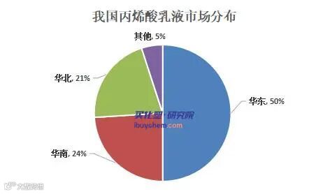 从市场需求来看,中国丙烯酸乳液市场分布主要以华东、华南地区为主,华北次之,西南等其他地区市场相对较小。