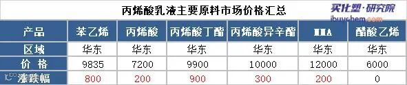 近期,丙烯酸乳液受主要原材料上行影响,成本面承压,部分乳液生产企业发布调价函,涨幅在200-800元/吨。