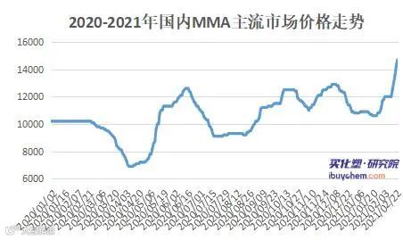 浙江石化、江苏斯尔邦等企业也与23日上调出厂价,江苏斯尔邦石化MMA出厂价上调至15200元/吨,涨800元/吨;浙江石化张家港库自提价上调至14300元/吨,鱼山出厂上调至14100元/吨,涨幅1000元/吨。