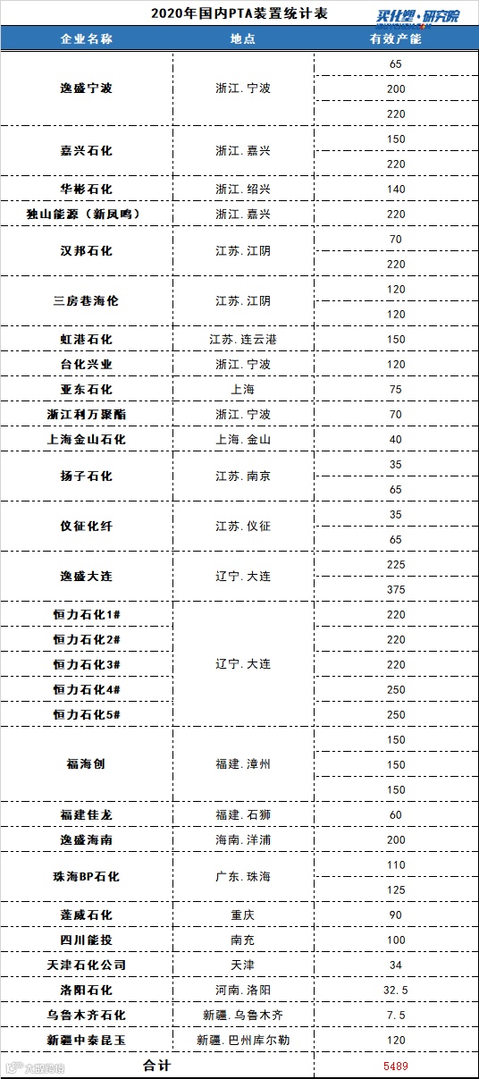 导读:2020年上半年我国新增PTA产能160万吨/年,截止到6月底,我国PTA总产能已达到5489万吨/年。