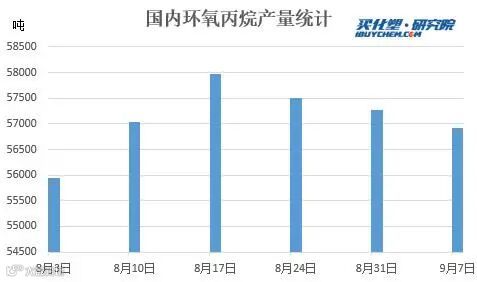 据目前了解,国内装置开工率下降,红宝丽因原料问题停车检修、长岭催化剂再生降负,鑫岳装置降负检修,滨化清塔,航锦科技计划晚间开始清塔降负,金岭负荷短暂不稳后恢复,连带国内整体装置开工下滑。据测算,本周国内环氧丙烷市场开工率为80%附近,较上周略降0.6个百分点,周产量约5.69万吨。