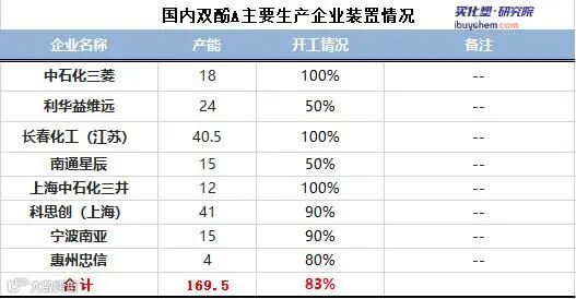 国内双酚A企业整体开工率下降至83%左右;利华益维远24万吨/年双酚A装置降负运行,南通星辰15万吨/年双酚A装置降负至5成运行,因本月环氧树脂订单减少,双酚A工厂库存量提升,持货商出货压力增大。