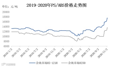 国庆假日之后,PS/ABS市场一路上扬。截至11月10日, PS涨幅达42%, ABS涨幅达27%。如果与年内最低值相比,PS部分涨幅更是达60以上,ABS涨幅达74%以上。